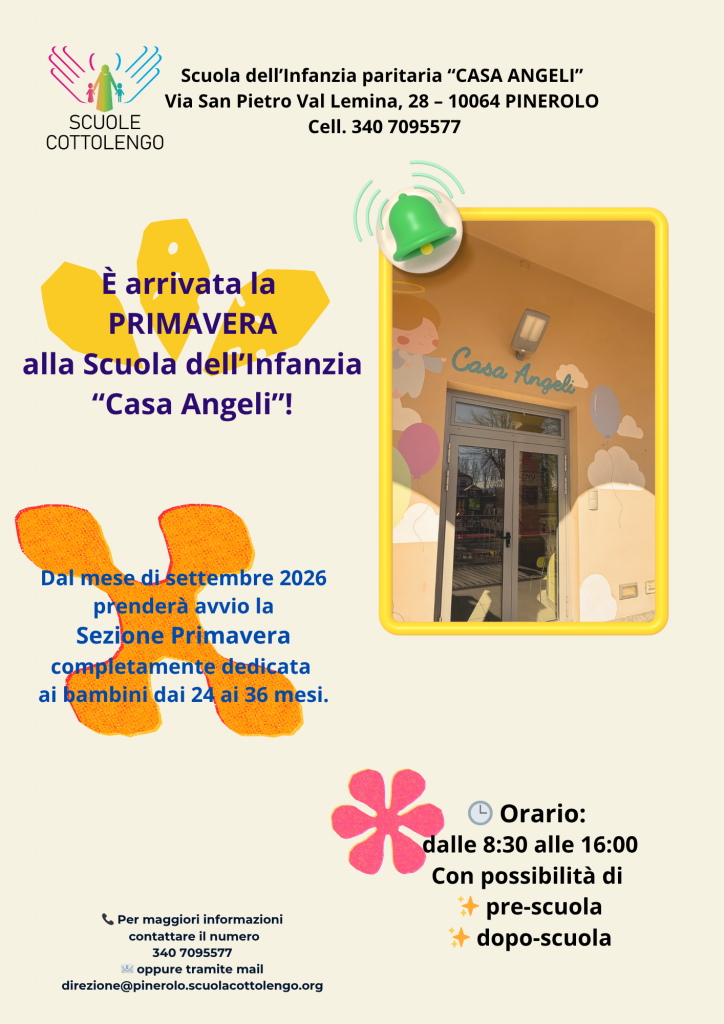 Siamo pronti a partire…con una nuova avventura.È arrivata la “SEZIONE PRIMAVERA”!!! Da Settembre 2026 sarà aperta presso la nostra scuola anche la “Sezione Primavera” dedicata ai bambini dai 24 ai...